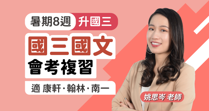 會考輔考強師思岑老師將帶著孩子們一步步剖析會考趨勢,活潑明快的課堂氛圍、系統化的主題複習,以及易記易懂的重點整理,將為孩子接下來一整年的備戰打好最紮實的基礎,讓國文成為衝高會考成績的優勢!
